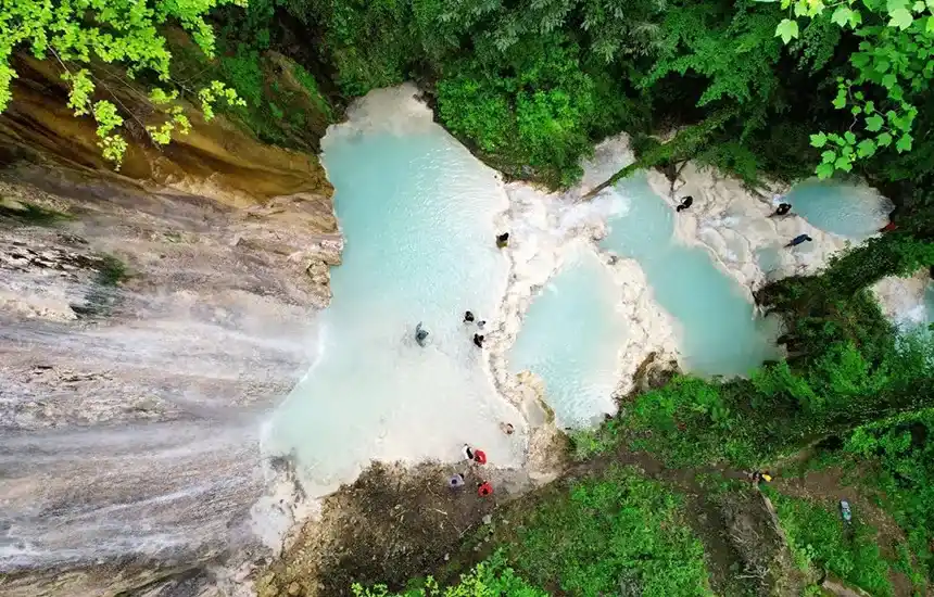 - حوضچههای پلهای و آهکی (تراورتن): این حوضچهها که تو هر طبقه از آبشار به صورت طبیعی شکل گرفتن، رنگهایی از سبز روشن تا نارنجی و قهوهای به خودشون گرفتن که کنار آب زلال، یه منظره نقاشیگونه درست میکنن. این پدیدههای زمینشناسی خیلی کمیابن و آبشار اسکلیم یکی از بهترین نمونههاش تو ایرانه. تصور کن تو هر پله، یه استخر طبیعی کوچیک و بزرگ با رنگهایی از دل طبیعت درست شده؛ این همون چیزیه که اسکلیم رو خاص میکنه.