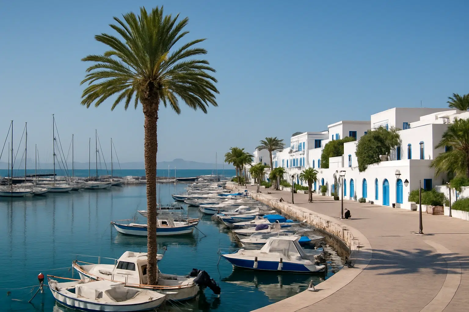 بندرگاه سیدی بو سعید | قدم زدن کنار آبی مدیترانه