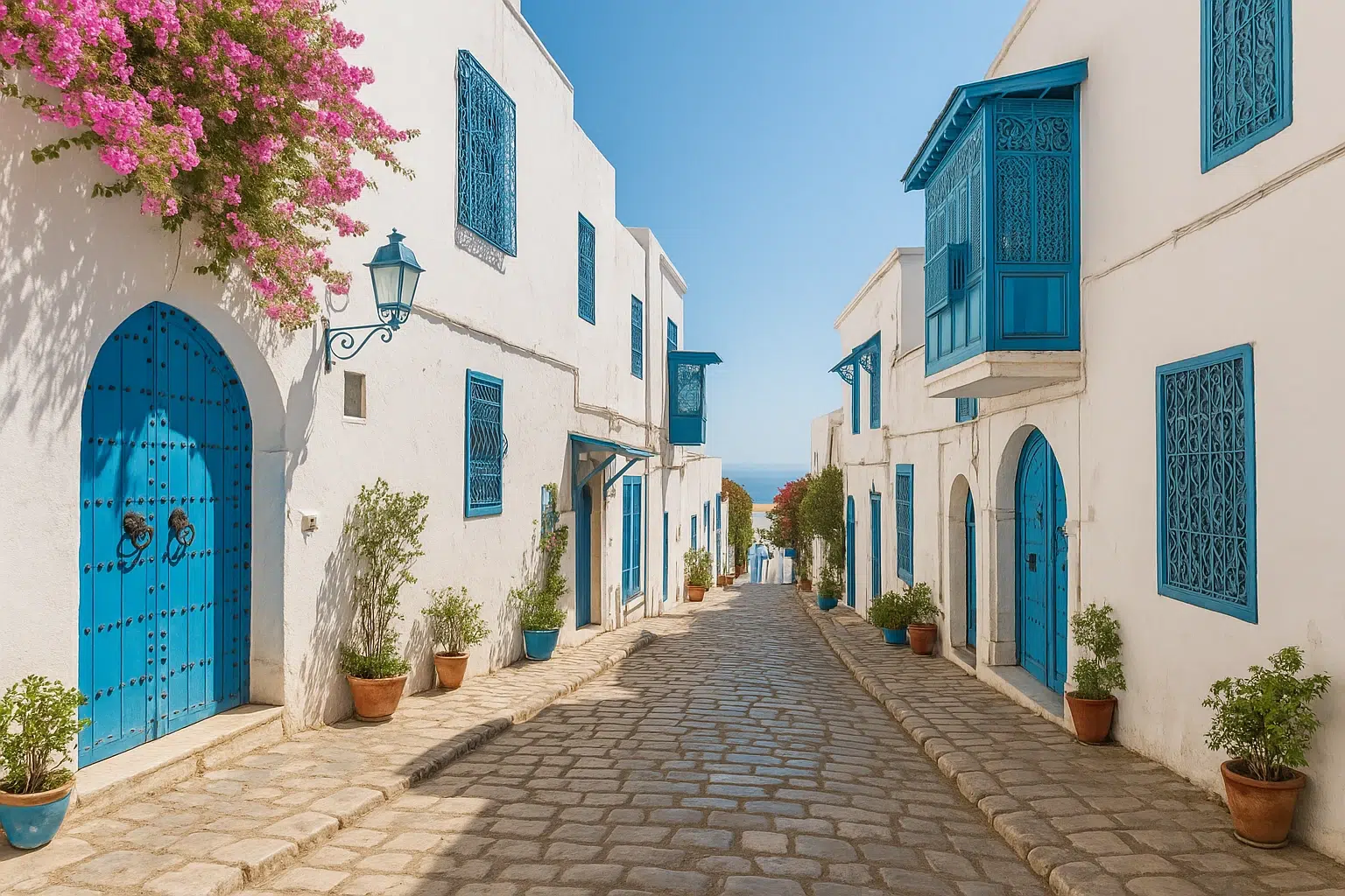 دلیل شهرت این شهر به “سانتورینی تونس”، شباهت شگفت‌انگیز آن به دهکده‌های ساحلی یونان است. خانه‌های سفید با پنجره‌ها و درهای آبی، کوچه‌های سنگ‌فرش و گل‌های معطر یاس، فضایی آرام و رؤیایی ایجاد می‌کنند که بسیار مورد توجه هنرمندان و گردشگران قرار گرفته است. تجربه سفر به سیدی بو سعید، همان‌قدر که بصری و فرهنگی است، آرامش‌بخش نیز هست.